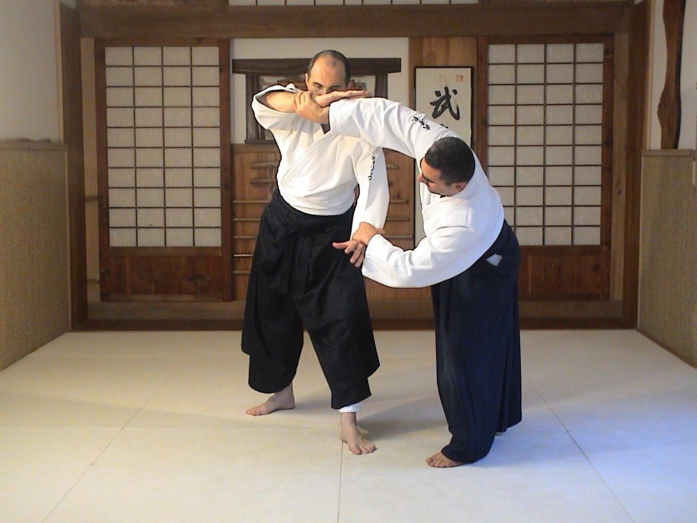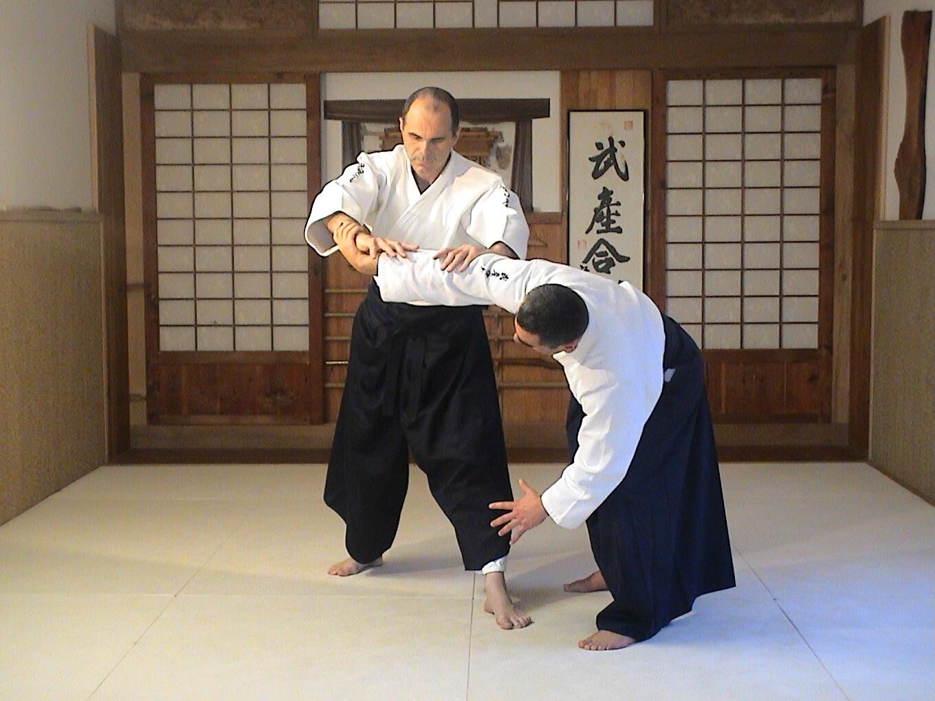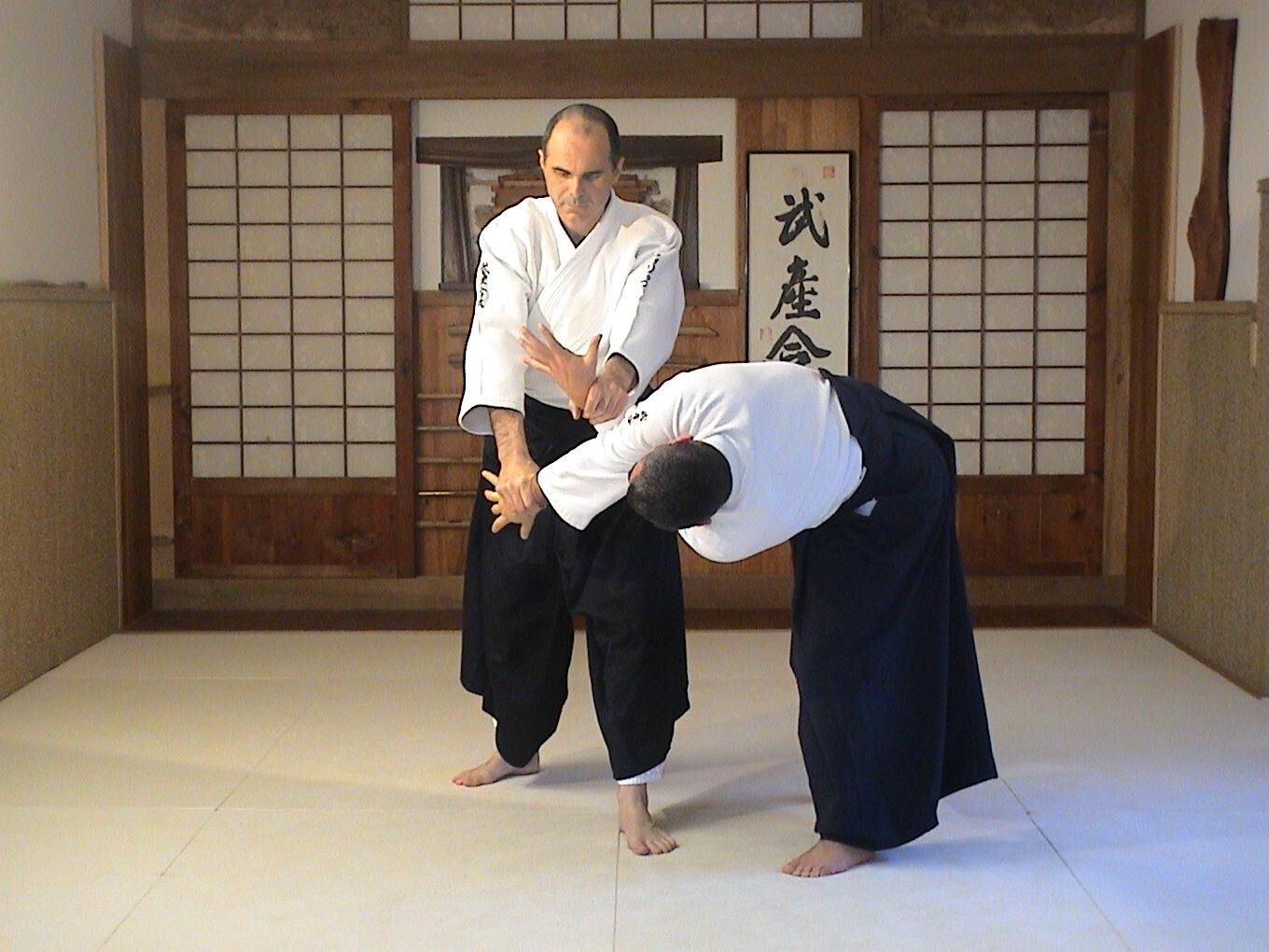 Ushiro ryote dori juji nage n’est jamais qu’un ushiro ryote dori ikkyo que l’on exécute en conservant le deuxième bras d’aite prisonnier.
