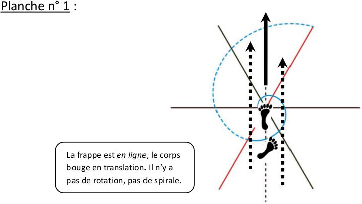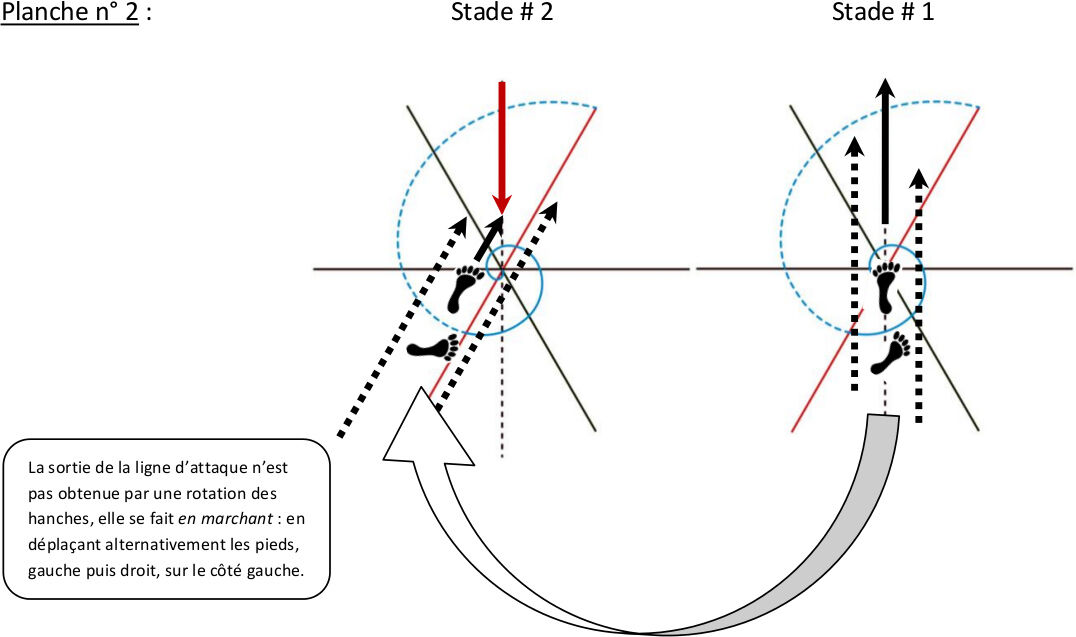Mais alors, puisque la frappe était linéaire dans le suburi de stade 1 #, et que c’est très exactement la même frappe qui est reproduite dans le suburi de stade # 2, après que le corps se soit déplacé de l’angle nécessaire, on comprend aisément qu’il s’agisse, dans ce deuxième cas également, d’une frappe linéaire, en translation, et sans rotation des hanches.