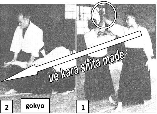 Comme personne au Japon ne comprenait vraiment cette unité, ce rapport d’harmonie, et le sens qui pouvait bien se trouver derrière le mot « loi », la traduction naturelle des élèves, puis officielle à la mort d’O Sensei, devint « premier contrôle ». Le problème est que ce premier contrôle était devenu dans leur esprit ikkyo seulement. Les pratiquants ayant perdu la connaissance de l’identité d’ikkyo et de gokyo, en conclurent que gokyo était une autre immobilisation qu’ikkyo, et ne pouvait plus, en bonne logique, être également la première immobilisation. C’est ainsi que gokyo devint la cinquième immobilisation.