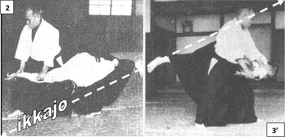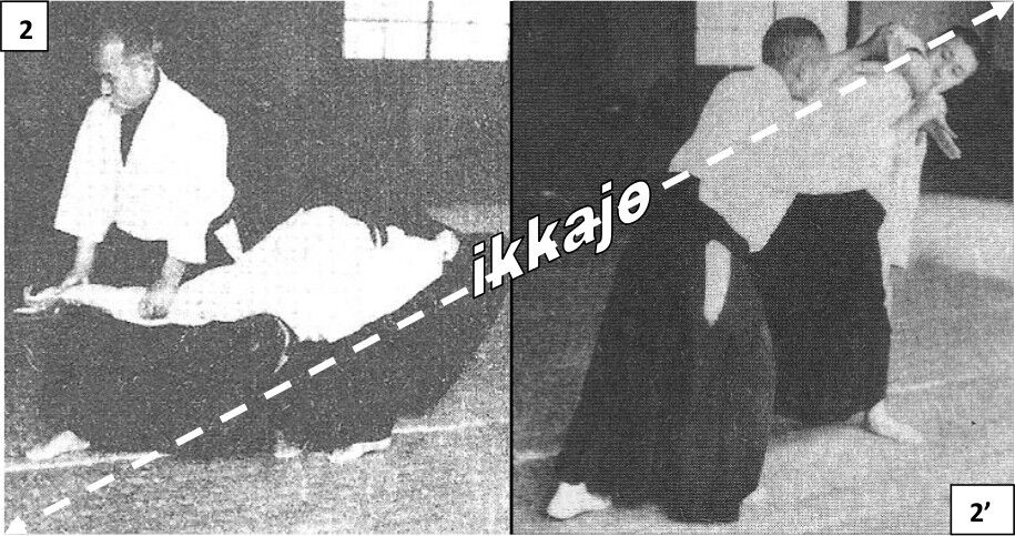 Les photos 2 et 3’ montrent l’effet absolument identique des mouvements gokyo et ikkyo sur uke.