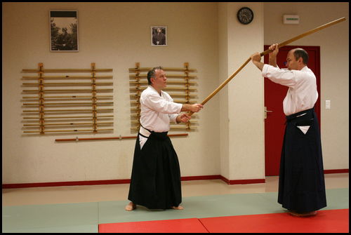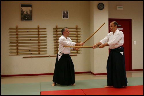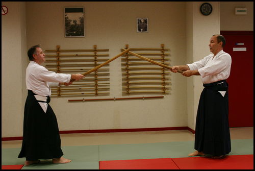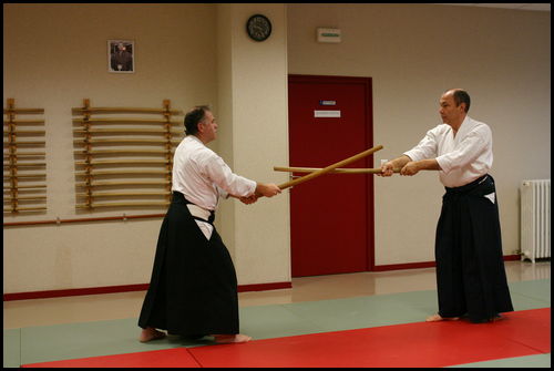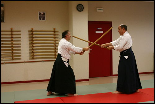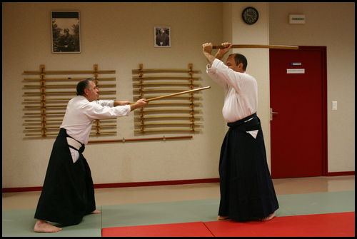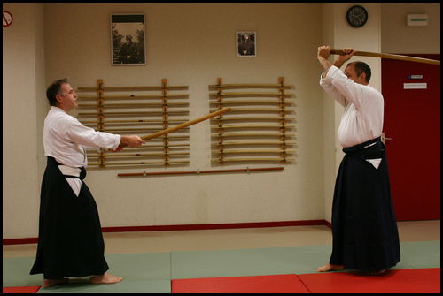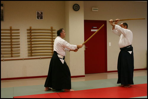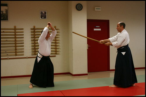 Uke tachi : Donner 1 impulsion sur le ken d'uchi et armer le ken pour frapper shomen.