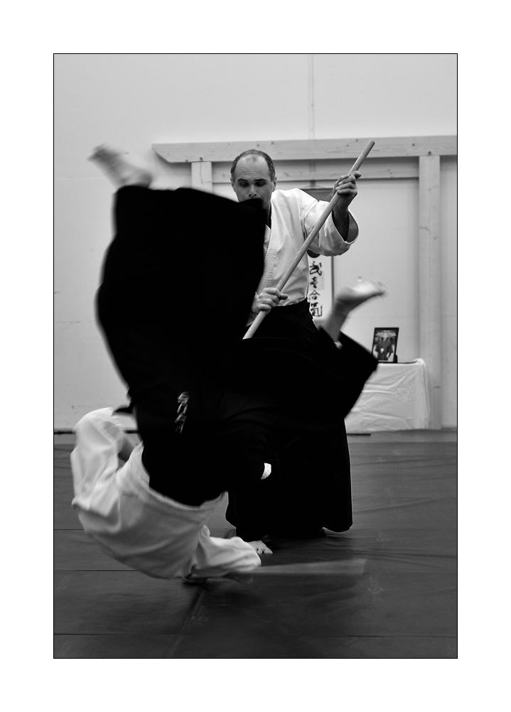 N.B. : Il est également possible à uke jo de changer la position de ses mains sur le jo lors de la projection afin de frapper uchi jo avec uchikomen au moment précis où ce dernier touche le sol.
