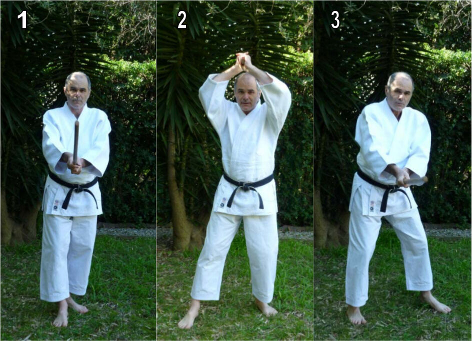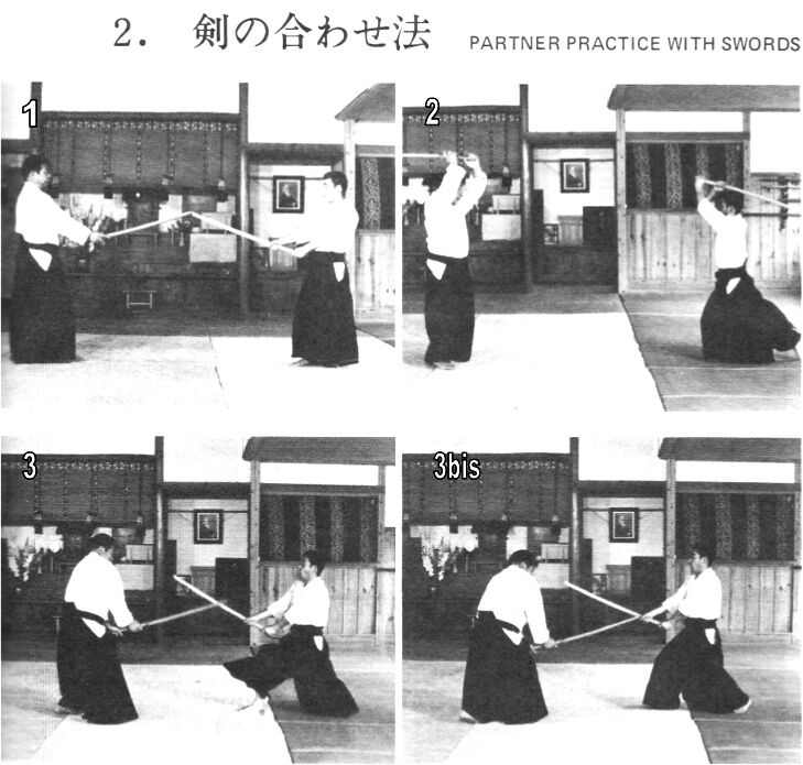 Ce qui sépare le temps 3 du temps 3bis (hanmi) qui va suivre n’est qu’une fraction de seconde, fraction de seconde pendant laquelle la jambe gauche passe de nouveau à l’arrière. C’est cette proximité entre le temps 3 et le temps 3bis qui rend si difficile qu’on les distingue, et qui a abouti à ce qu’on les confonde. Le moment de la coupe est extrêmement subtil et difficile à voir. Ceux‐là même qui ont vu Morihei Ueshiba, ceux qui ont vu Morihiro Saito – et j’en fais partie – n’ont pas vu ce que ces deux maîtres faisaient véritablement.