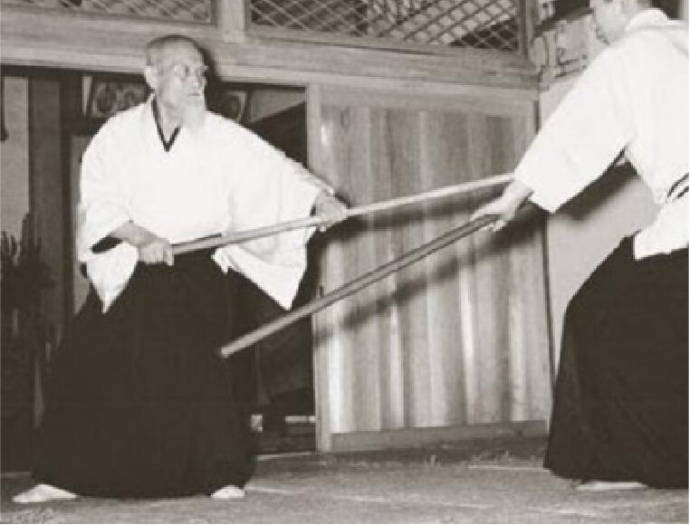 Je peux témoigner qu’à Iwama, dans les années 1980, j’ai vu personnellement maître Saito pratiquer de la sorte à plusieurs reprises. Mais comme je sais bien que ma parole ne suffira pas à convaincre tous ceux qui pensent que l’Aikido est tout entier dans la méthode, voici la preuve incontestable, par l’image, de cette réalité.