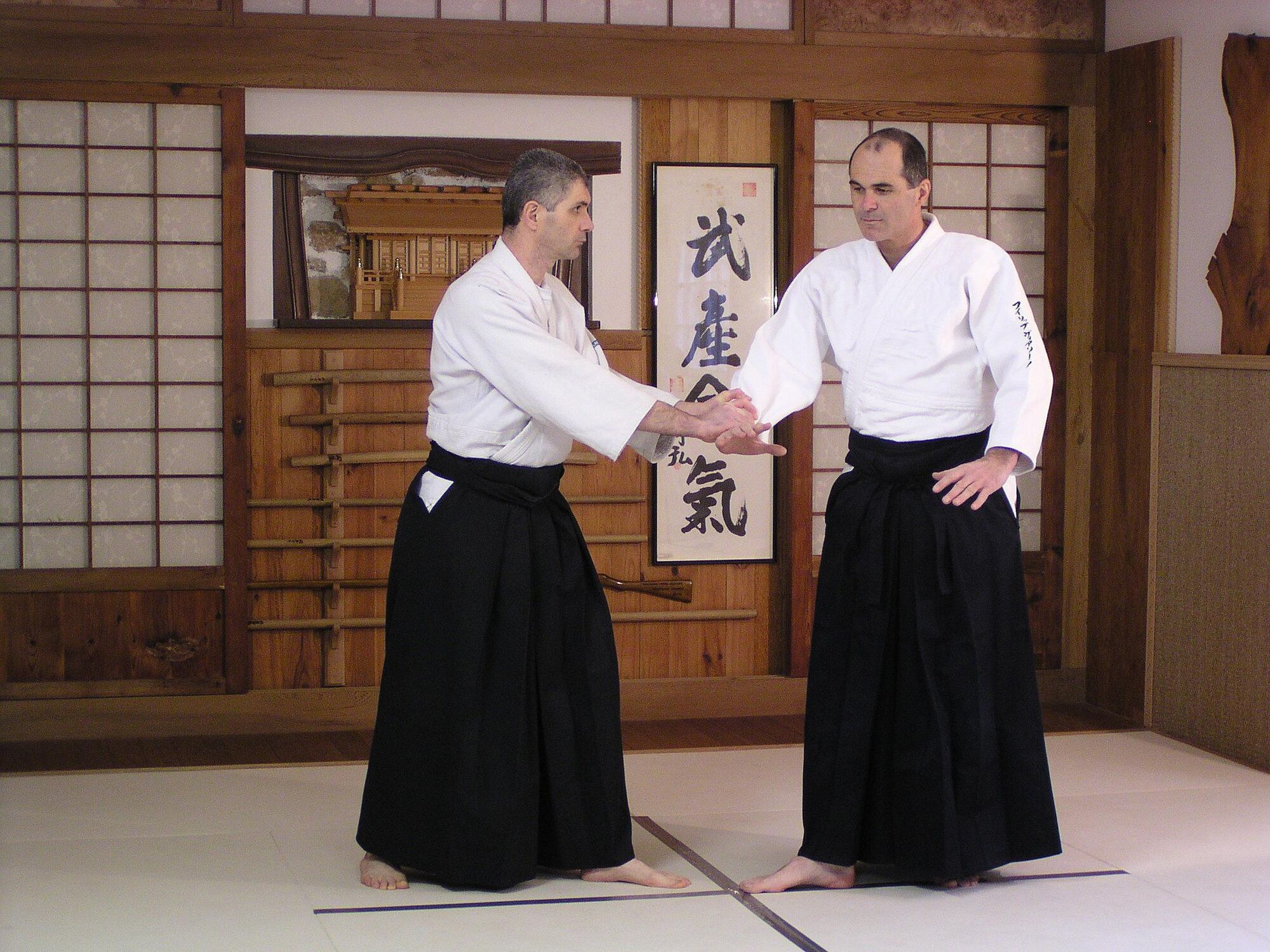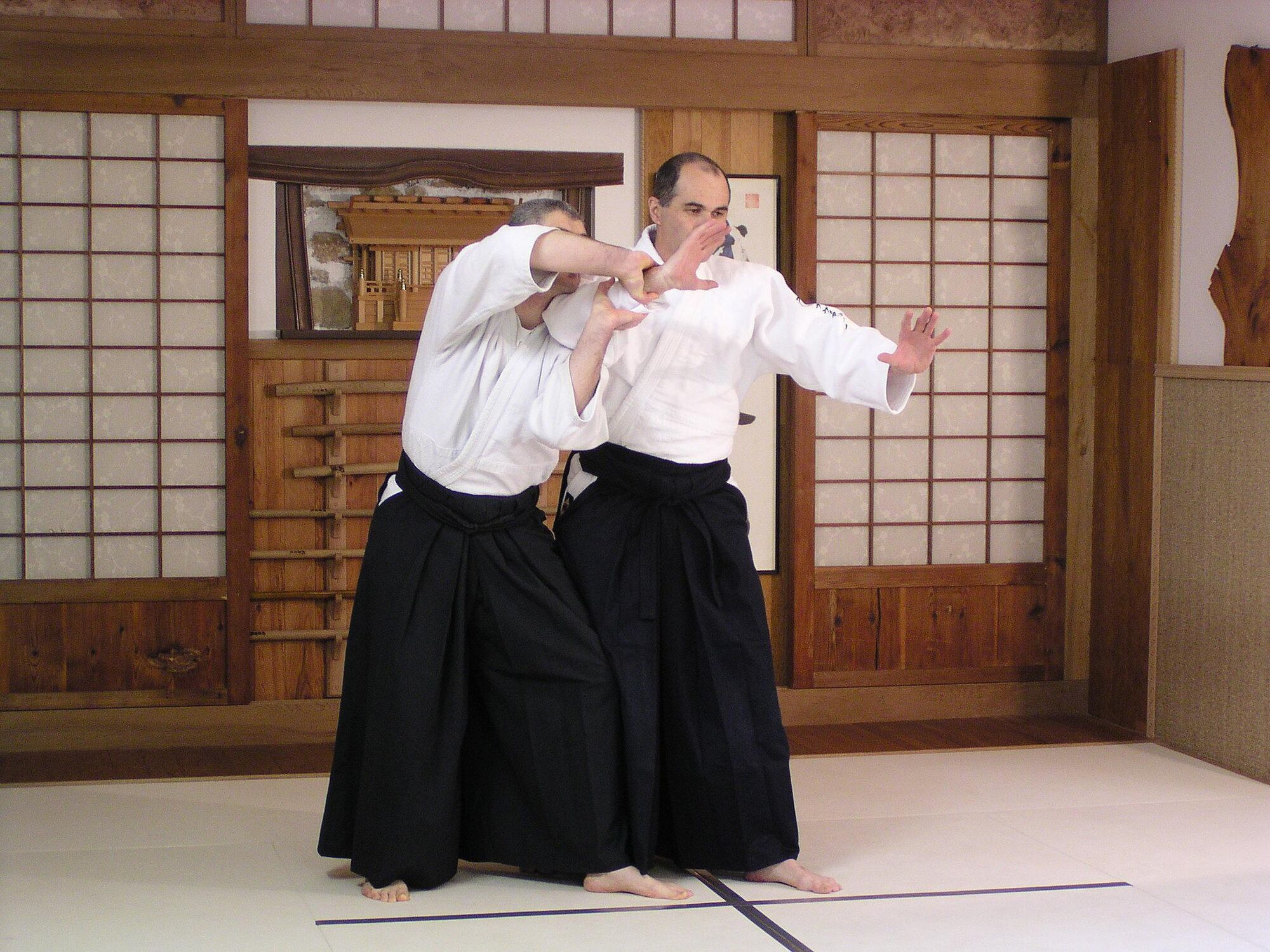 - Placé ainsi dans la ligne d’attaque et tourné vers uke, tori est exposé au danger qui peut se présenter dans le même temps derrière lui. Rappelons à cet égard le texte écrit et affiché par O Sensei à l’entrée de son dojo :