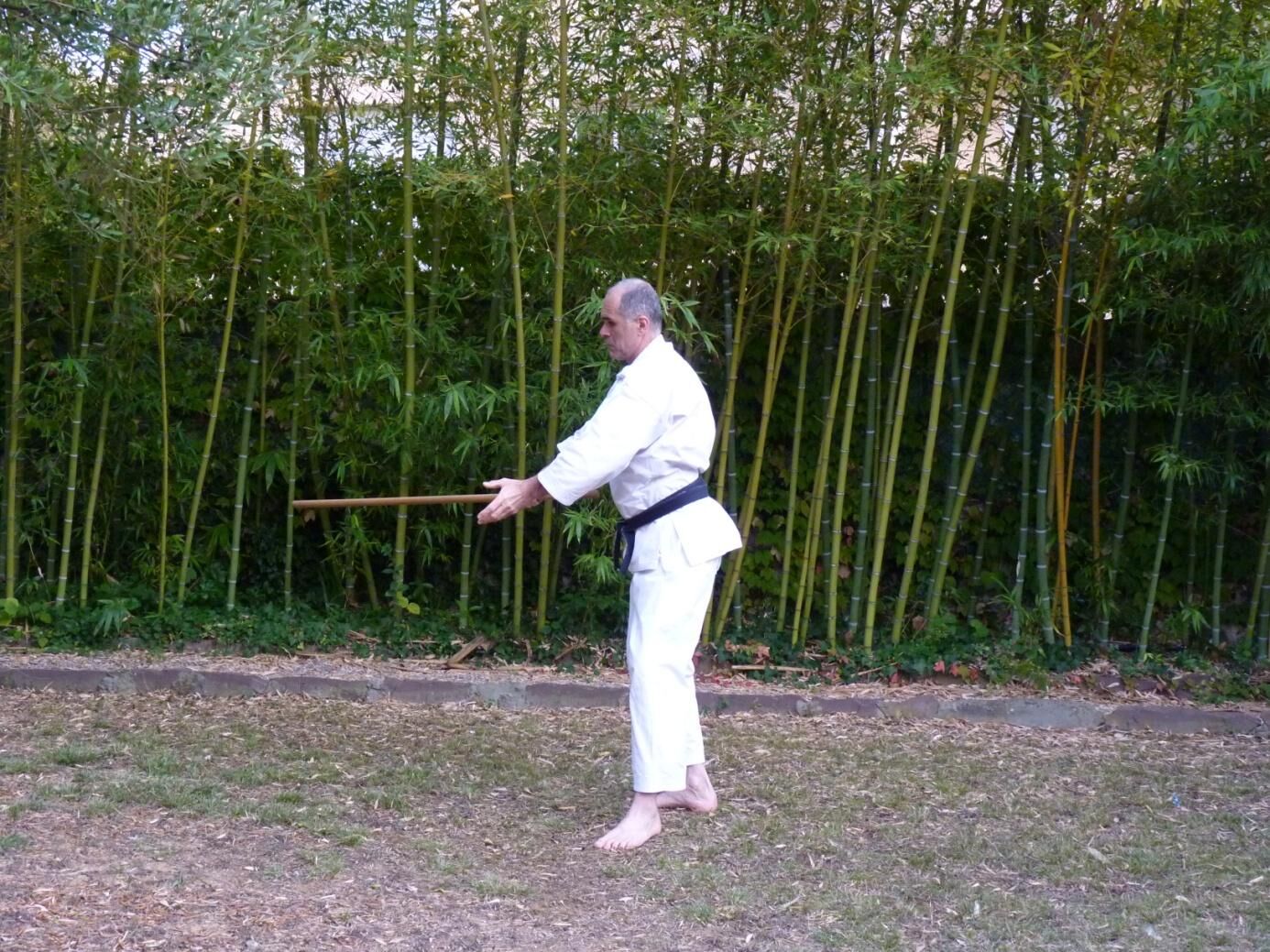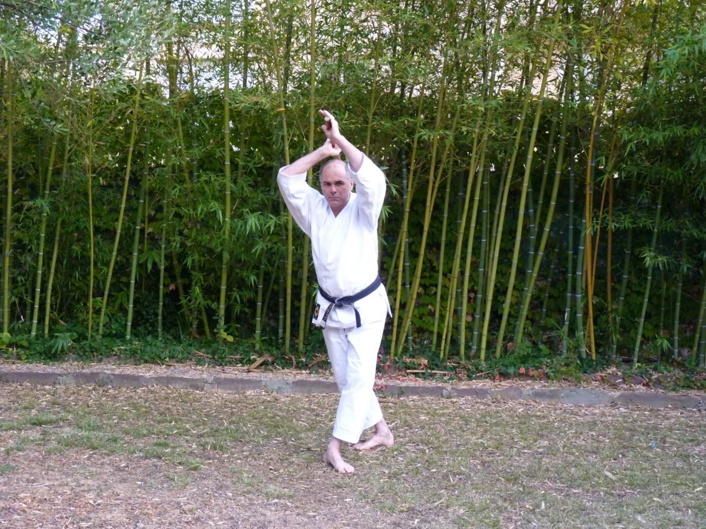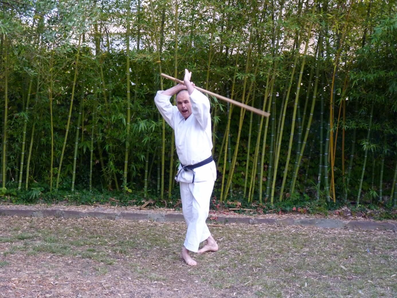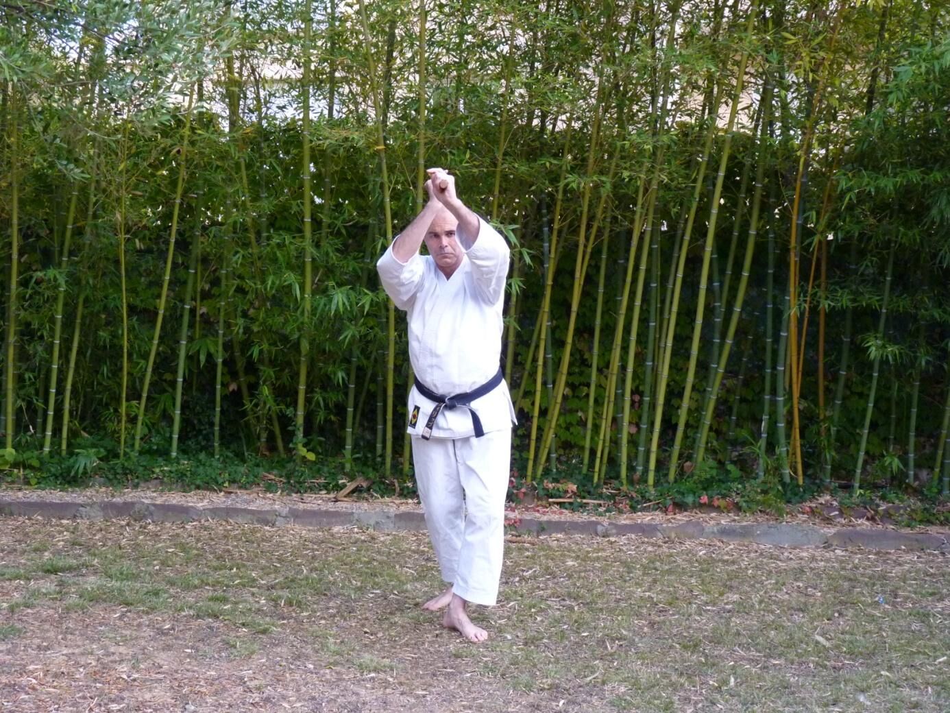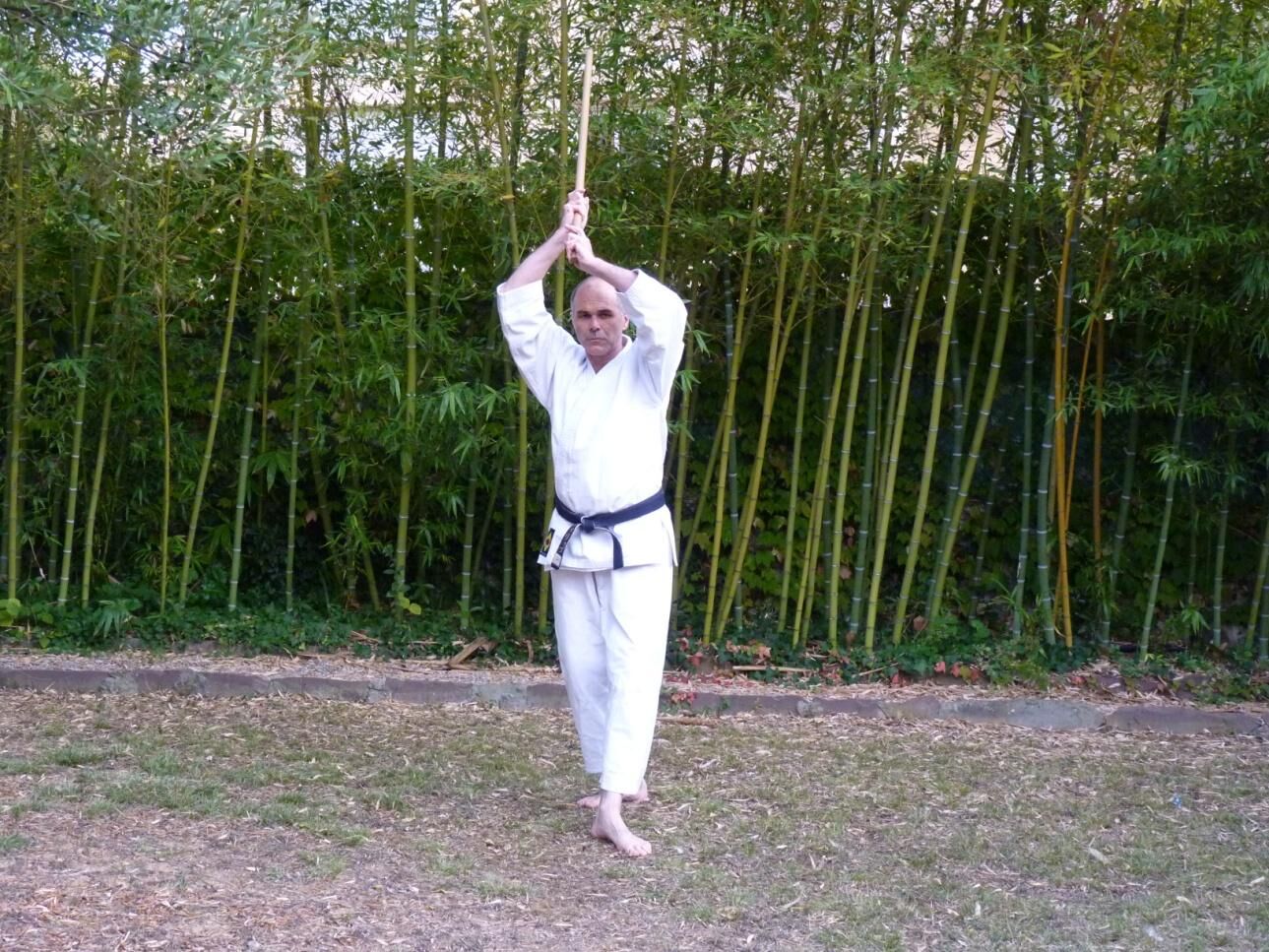 Passez de la garde chudan … à la garde jodan en prenant un pas vers l’arrière