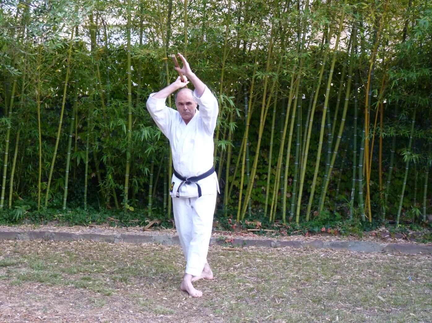 Au cours de ce même mouvement, la main droite glisse le long du jo jusqu’au contact de la main gauche. Dans cette position, la moindre rotation de votre axe est transmise instantanément au jo qui tourne alors comme une hélice.