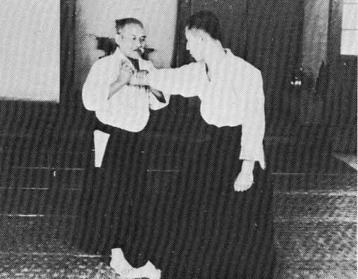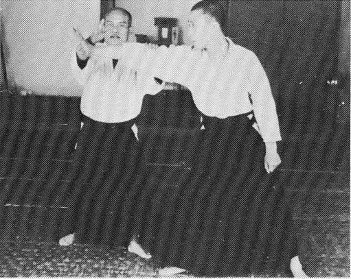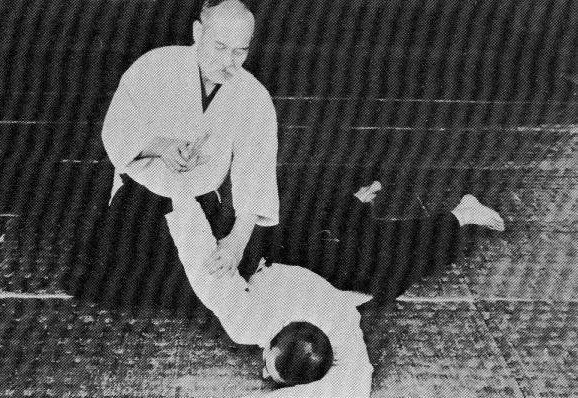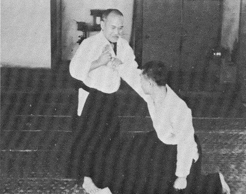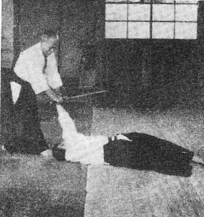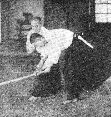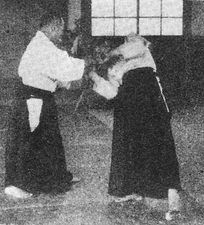 Examinons, sur la pellicule suivante, l’angle dans lequel O Sensei réalise nikyo ura, par rapport toujours à l’axe de l’attaque shomen uchi d’uke :