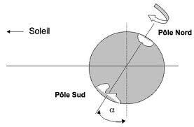 Nous savons que la terre tourne sur elle-même autour d’un axe incliné dont l’angle est de l’ordre de 23° (il varie un peu au fil des millénaires).