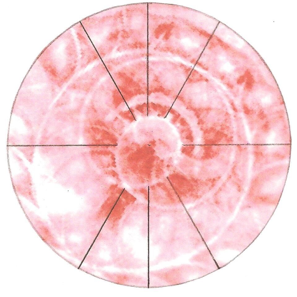 Pour des raisons qui apparaîtront clairement dans les prochains dossiers, nous avons choisi de sélectionner l’angle de 30° plutôt que celui de 23°. Nous avons ensuite rapporté cet angle dans chaque quartier du cercle circonscrit découpé par les deux diamètres rectangulaires.