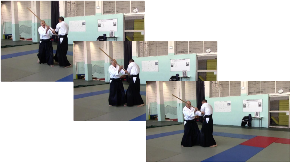 On peut se demander pourquoi Maître Saito a préféré la forme que nous connaissons aujourd’hui, celle où le jo commence à s’abattre et où la main droite glisse vers le bas au moment de frapper :
