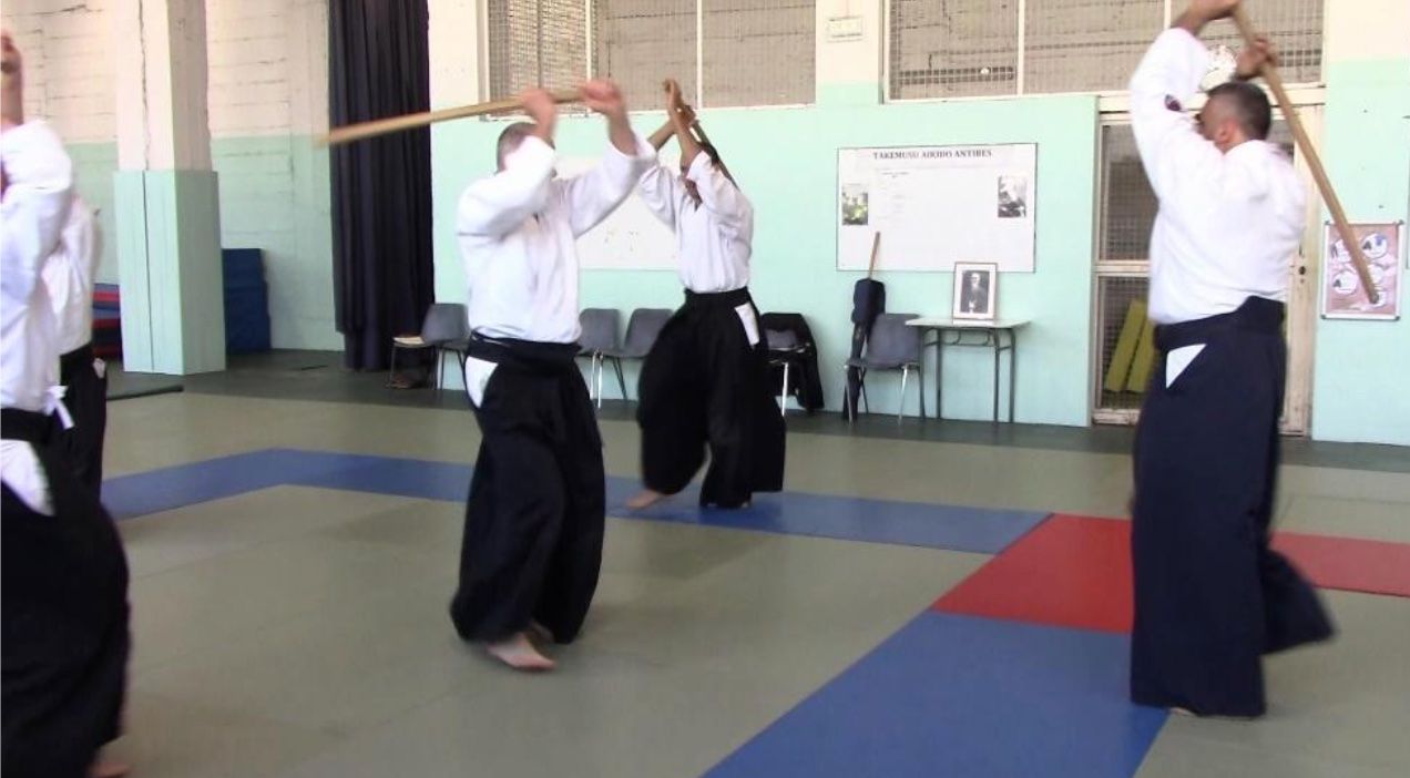Il est nécessaire évidemment de pratiquer d’abord ki musubi no tachi en ligne avec un partenaire, car on n’apprendra pas sans cela les mouvements et le rythme des différentes coupes, mais il faut absolument se défaire de l’idée que le kumitachi peut être appliqué tel quel dans une situation réelle : il n’a pas été conçu pour cela, il a été mis au point pour acquérir une gestuelle qui est indispensable pour permettre ensuite le travail en rotation dans les quatre directions. Le kumitachi n’est pas un combat, c’est un exercice éducatif, un préalable à toute pratique future de l’aiki-ken.