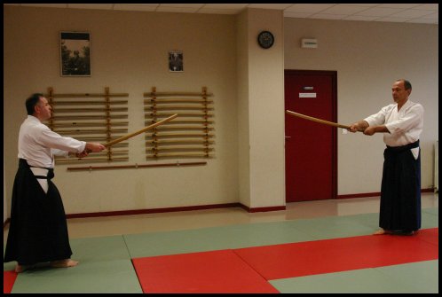 Uchi tachi : …uchi pied gauche devant.