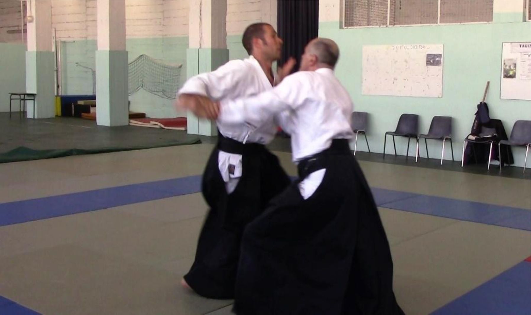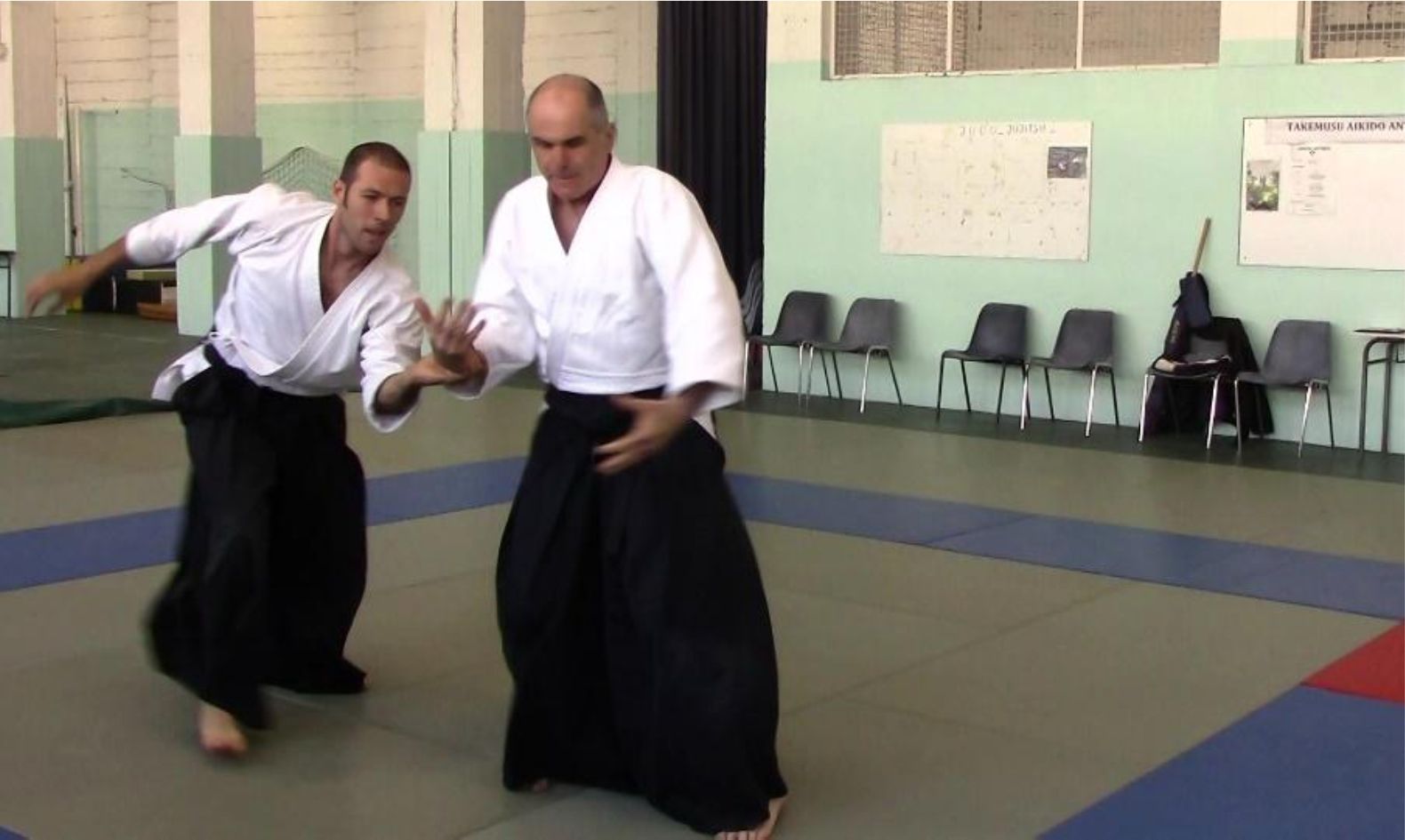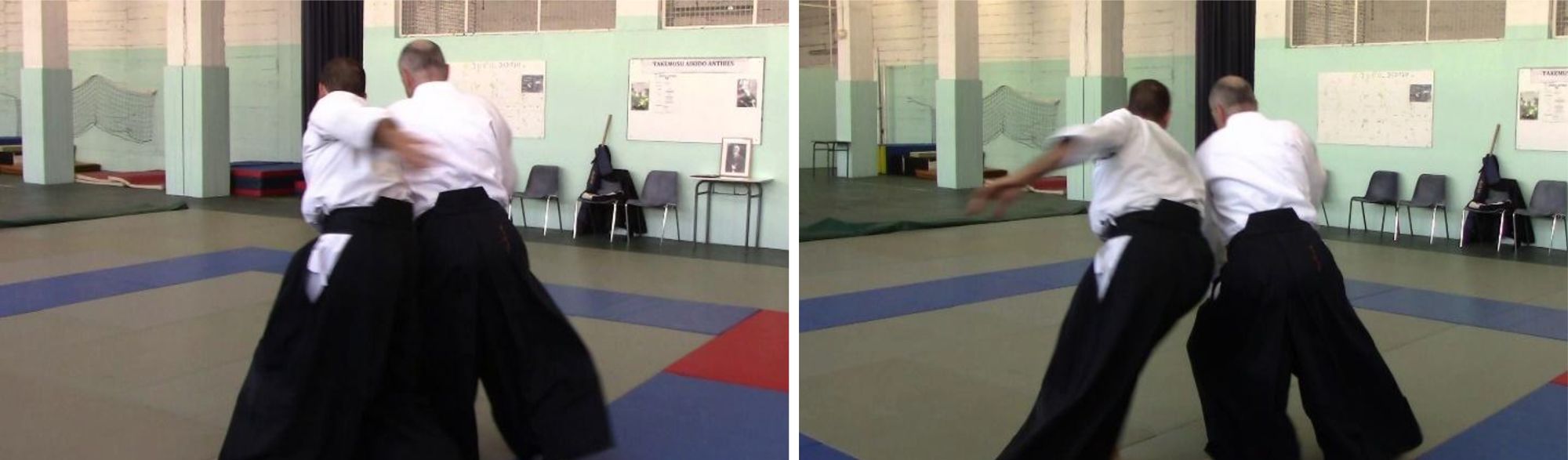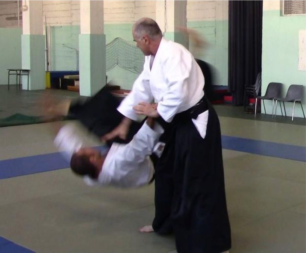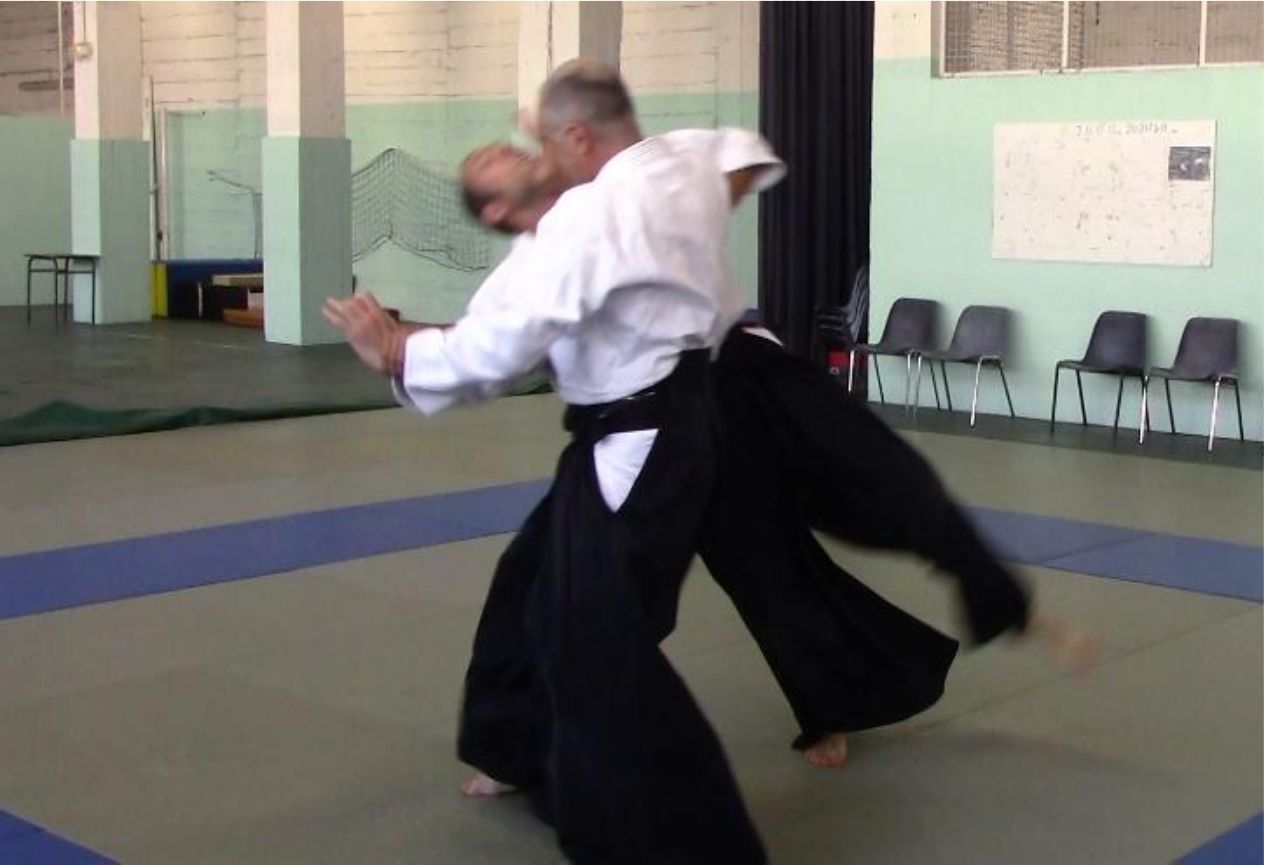 Le kokyu nage qui est illustré sur la vidéo est le résultat d’un tai no henka sur une saisie katate dori, immédiatement suivi d’un atemi au menton avec la main libre de tori.