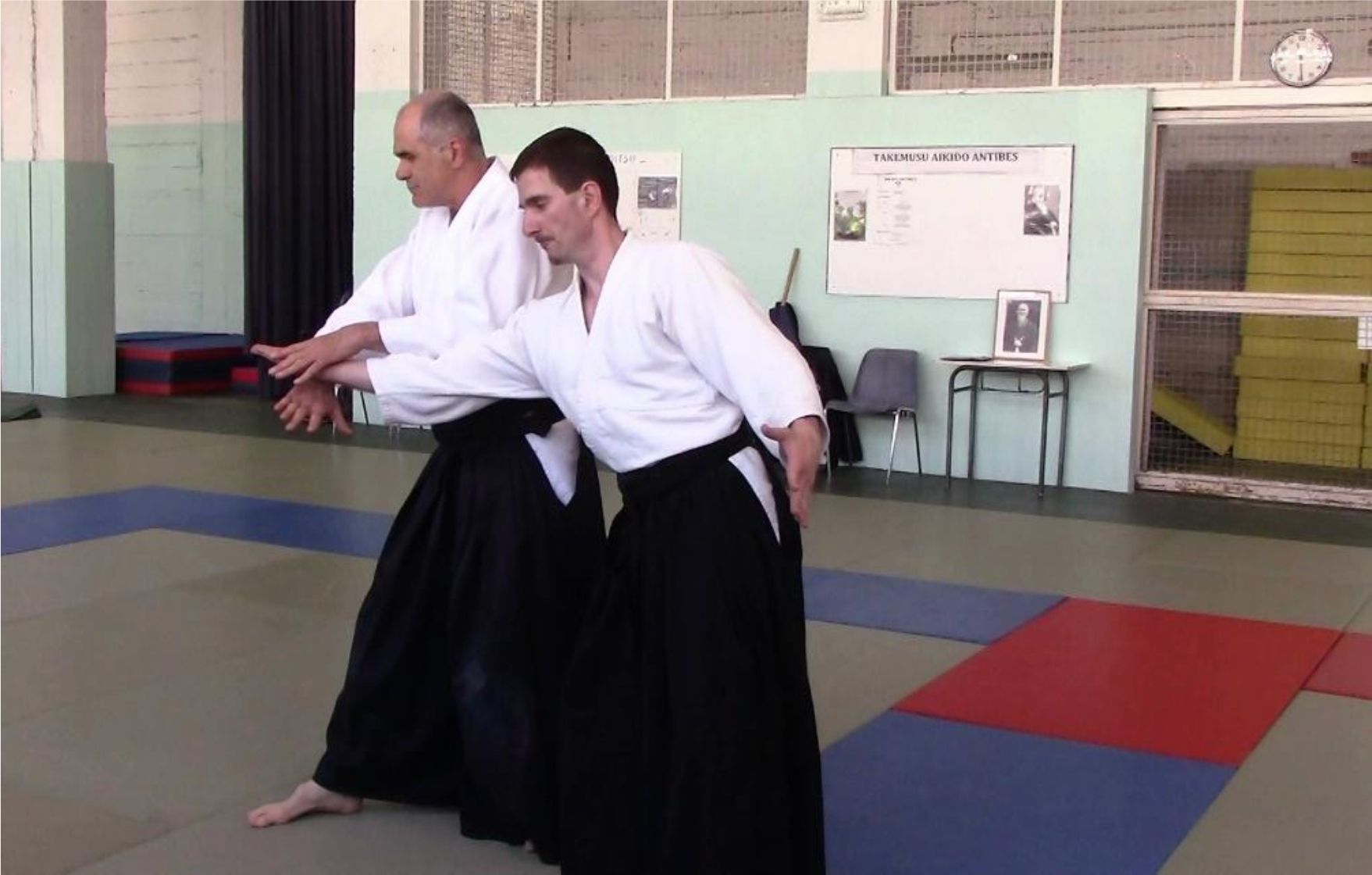 Ici aussi ce sont les deux rotations (du corps et de l’avant-bras) qui défont la saisie d’uke, ce n’est pas la main libre de tori. L’image donnée par la technique et le terme de te katana pourraient laisser croire qu’on "coupe" la saisie avec cette main, c’est impossible évidemment sans rotation. Même avec un couteau (car c’est là l’aspect martial de cette technique) la rotation serait indispensable, car c’est elle qui fournit la puissance de dégagement :