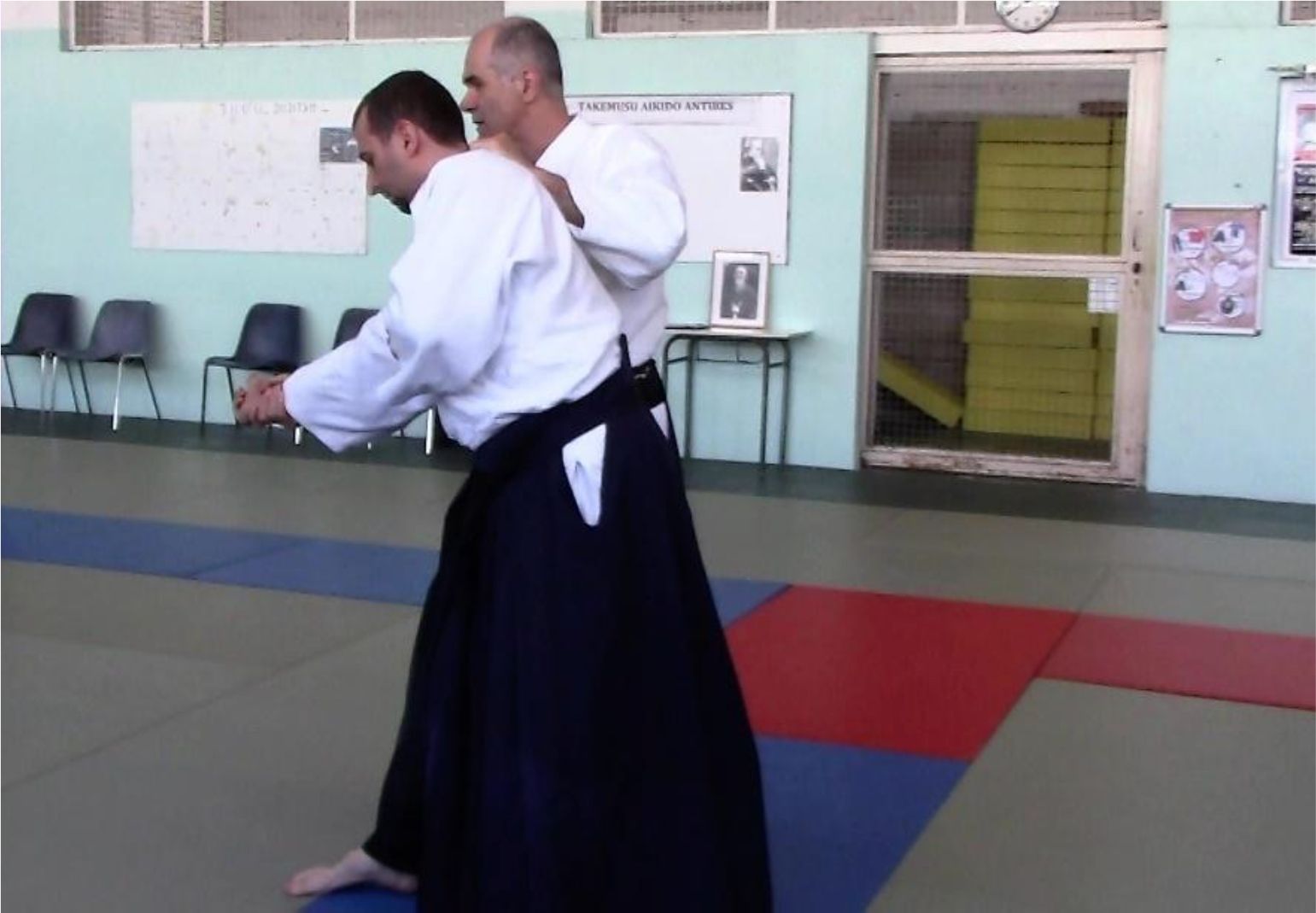 Maître Saito expliquait qu’O Sensei a développé ces trois manières à partir d’un dégagement unique qu’il pratiquait à l’origine, et qui consiste à saisir le poignet d’uke par-dessous avec la main libre :