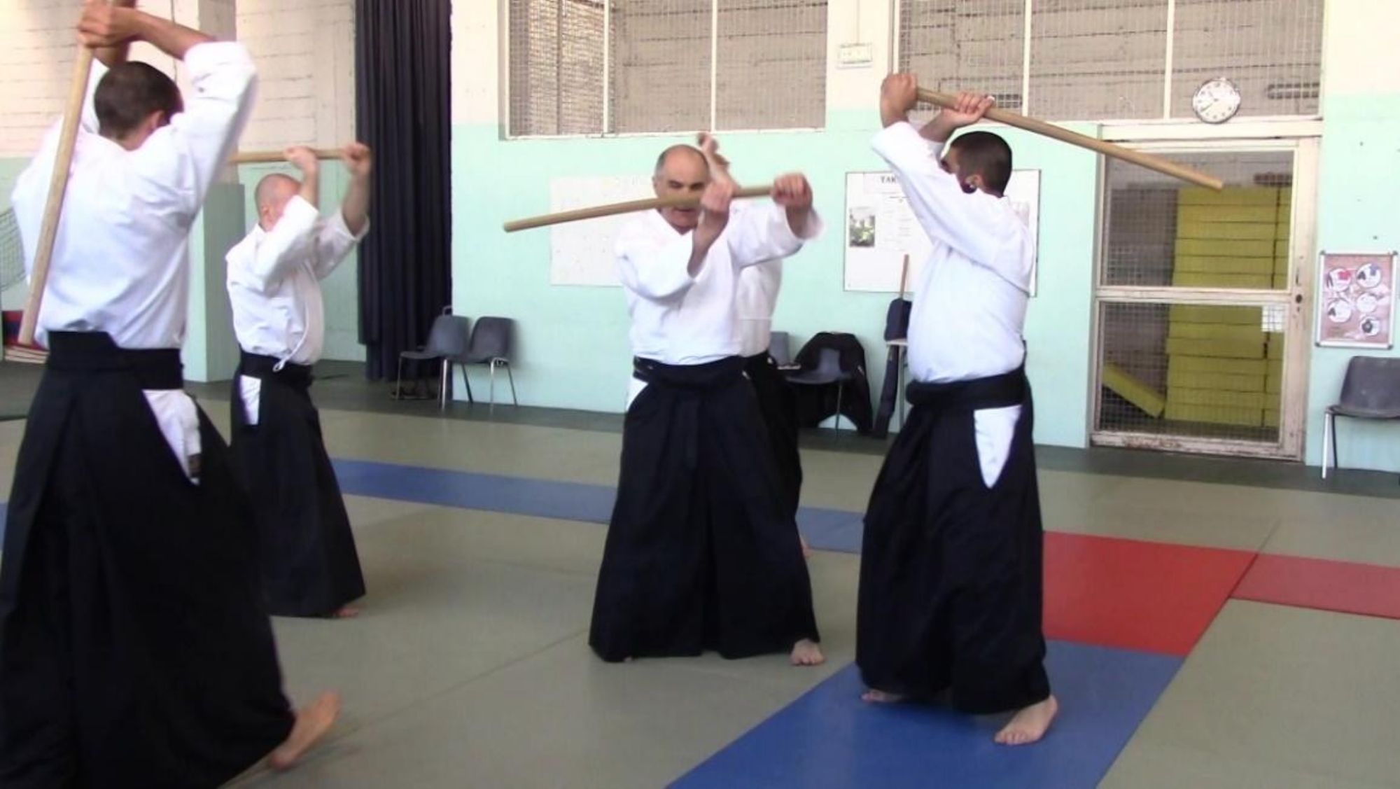 Uke tachi ne peut pas frapper deux fois de suite le même adversaire sans se mettre en danger dans les autres directions. Chaque frappe du sabre est définitive et destinée à un adversaire différent. Il y aura donc autant d’adversaires dans la réalité qu’il y a de frappes dans l’exercice d’étude. Il y a six frappes dans le kumitachi n°5, il est donc nécessaire pour cet exercice de mettre en scène six adversaires.