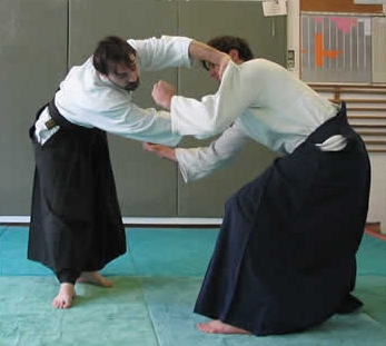 - Coup de poing porté au visage à partir d'une saisie Katate pour introduire différentes techniques telle que Ikkyo,Nikyo,Sankyo etc.…