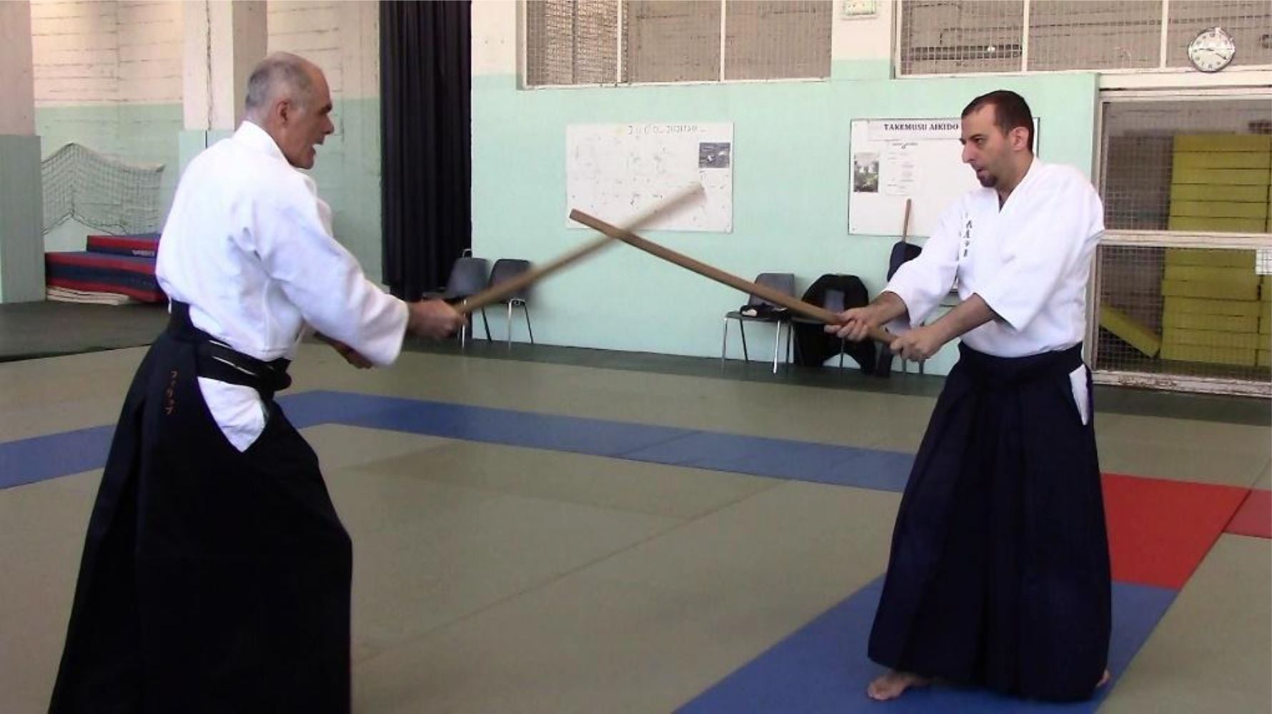 Dans le deuxième temps, uke tachi chasse le sabre d’uchi tachi hors de la ligne d’attaque :