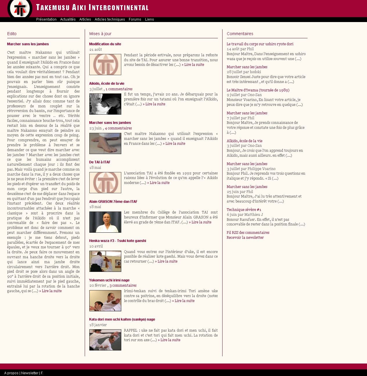 Le site de TAI a été lancé en mai 2003 à l'adresse www.aikidotakemusu.com avec comme objectif: