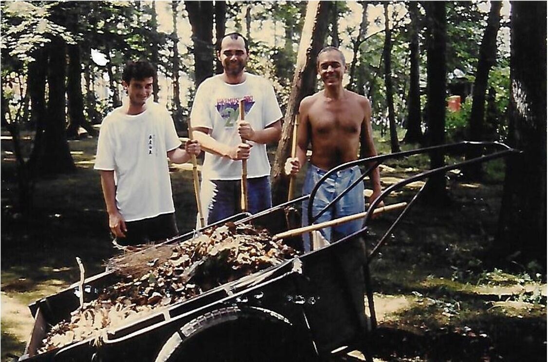 … et ils ne parvenaient pas à garder leur sérieux en balayant la mousse autour de l’Aiki jinja.Leurs drôles de manières de « gaijin » et leur indiscipline faisaient parfois le désespoir de maître Saito… mais ils aimaient l’Aikido de tout leur cœur, et trente ans plus tard tous ceux qui ne sont pas morts transmettent fidèlement ce qu’ils apprirent à cette époque de leur vie.