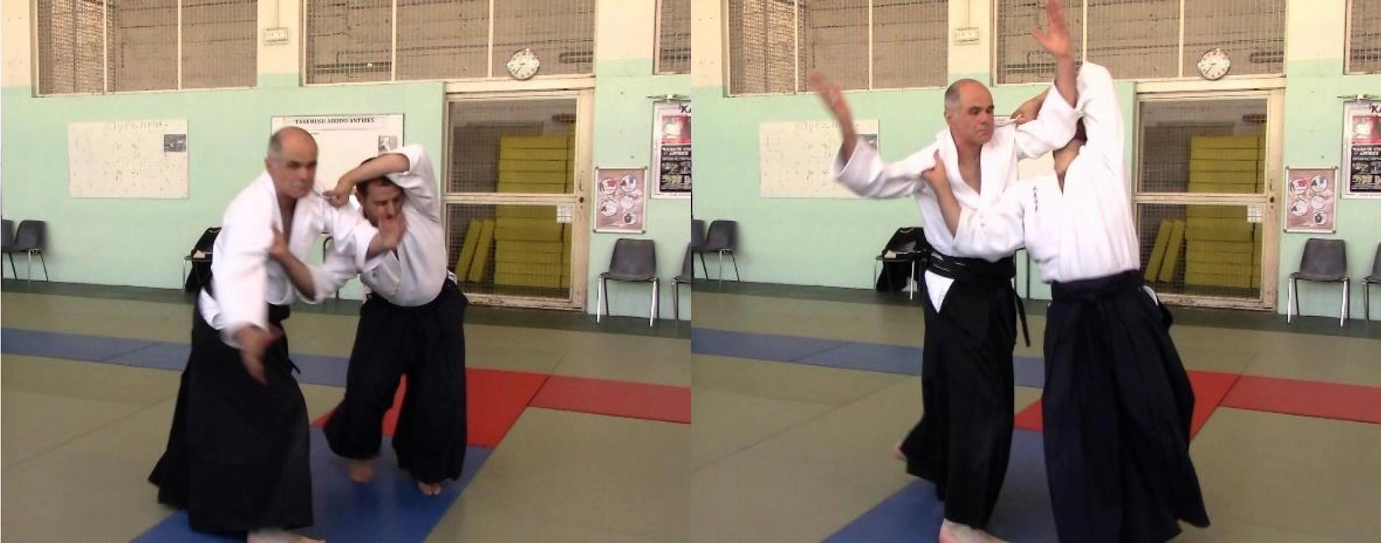 le deuxième temps du déplacement, le temps tenkan est lui consacré à la projection de l’adversaire qui tient les épaules :