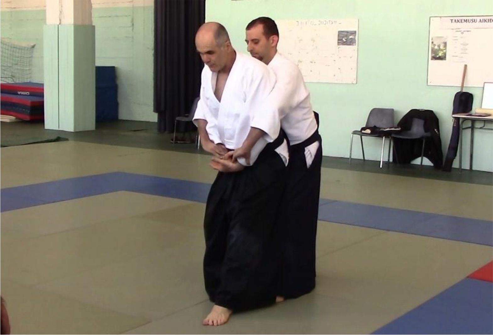 La saisie du poignet d’uke se fait ensuite par un mouvement d’enroulement pendant lequel la base du pouce de tori reste au contact. Le poignet d’uke est donc saisi par-dessous, comme démontré sur la vidéo.