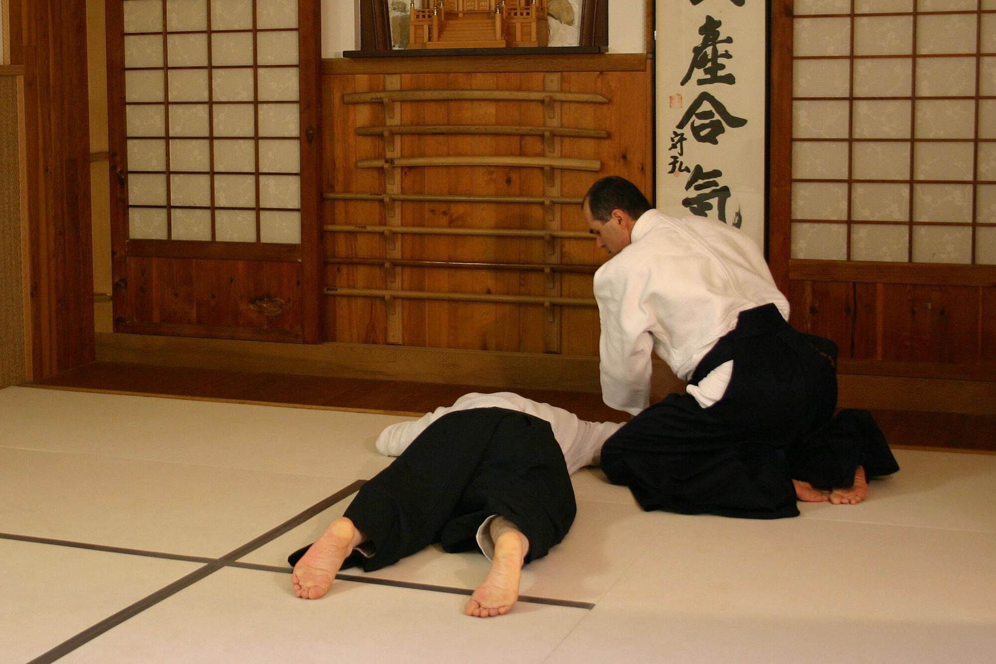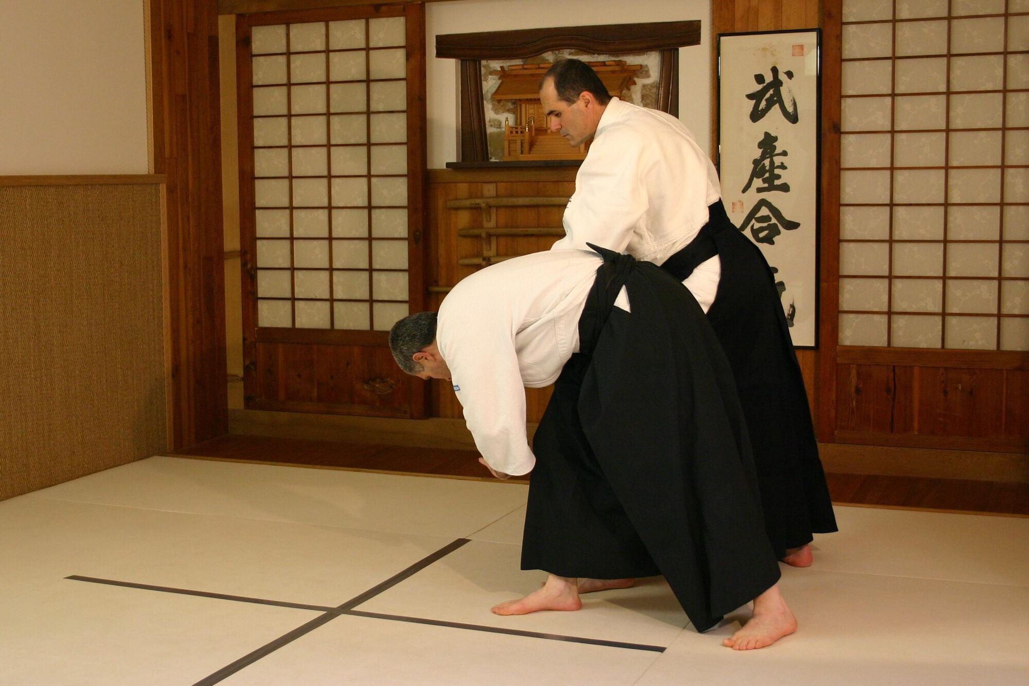 Ikkyo ura utilise le déséquilibre arrière d’aite. Si vous poussez de manière importante comme pour ikkyo omote, aite sera déséquilibré et tombera vers l’avant, son simple poids s’opposera alors à ce que vous l’ameniez dans son déséquilibre arrière.